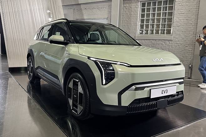 이날 국내 언론에 공개된 EV3는 EV6와 EV9에 이어 국내에 세 번째로 선보이는 E-GMP 플랫폼 기반 전기차다. 첨단 편의기능을 적용하면서도 가격 경쟁력을 끌어올려 전기차의 대중화를 이끌겠다는 게 기아 측의 계획이다.