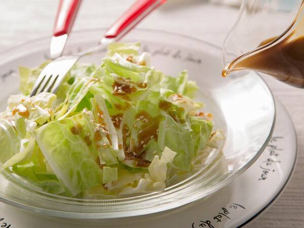저녁: 대두 스테이크 + 구운 양배추, 올리브 오일 드레싱
