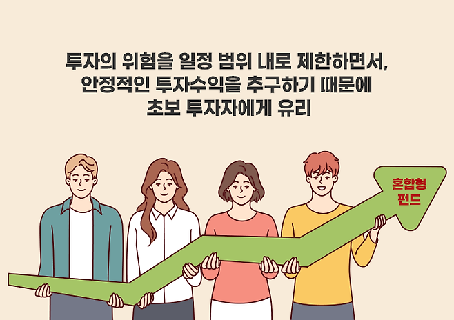 이러한 이유로, 혼합형 펀드는 주식형 펀드를 100%로 하기는 부담스럽지만 수익률을 높이고 싶은 초보 투자자, 채권의 수익률에 만족하지 못하지만 주식과 채권에 분산투자 하기 어려운 투자자, 중립적인 성향의 투자자들에게 적합한 상품입니다.