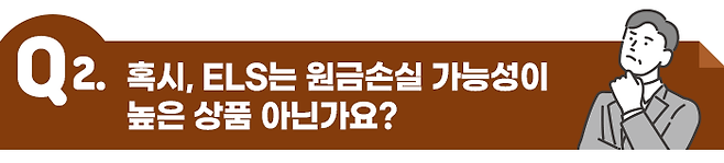 네. 한때 대체투자상품 중에서 국민 투자상품이라고 불렸던 ELS는 예금보다 보통은 더 높은 수익률을 제공해 주지만 원금손실 가능성이 있는 파생상품입니다.