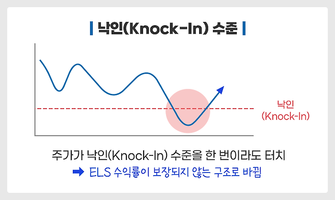 ELS의 기초자산인 주가가 낙인 수준을 한 번이라도 터치하게 되면 약속했던 ELS 수익률이 보장되지 않는 구조로 바뀌어 버리기 때문입니다.
