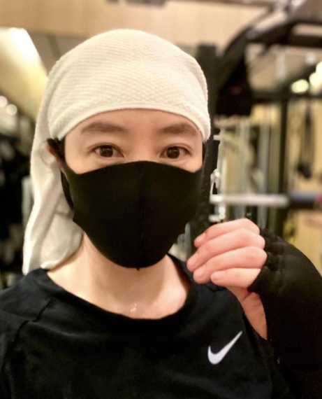 김혜수는 레드 컬러 등산복을 입고 아이보리 바지에 보라색 운동화로 애슬레저룩을 완성했다.