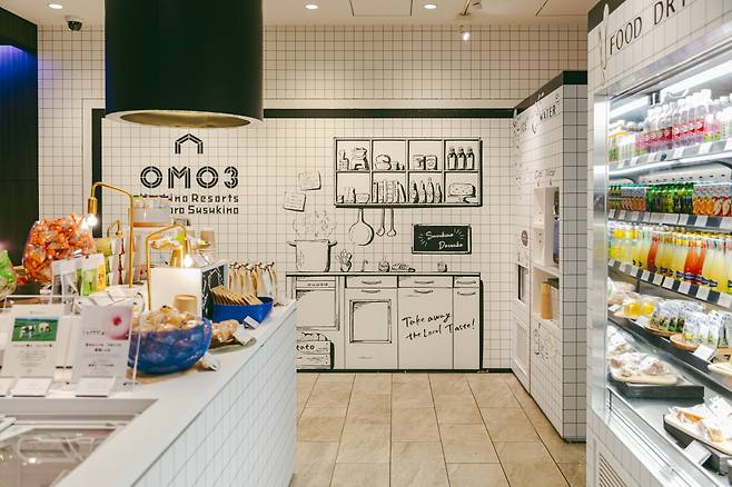 스스키노에 있는 오모3 삿포로 스스키노(OMO3 Sapporo Susukino)는 가성비 호텔이다. 아침 뷔페를 제공하는 식당이 없는 대신 오모 스타일의 24시간 편의점을 운영하고 있다. 시간마다 판매하는 메뉴가 달라져 구경하는 맛이 쏠쏠하다. 삿포로 로컬 가게들의 빵과 과자 등도 매대를 채우고 있다.