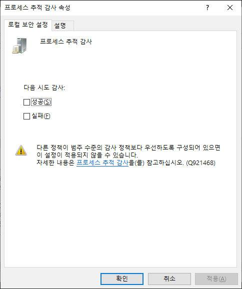 오른쪽 정책 창의 맨 아래에 있는 [프로세스 추적 감사]를 클릭해 속성 창을 열자. 여기서 성공과 실패 체크박스를 모두 선택한 뒤 확인을 누르면 된다. 이 설정을 적용하면 PC에서 새로운 프로그램(프로세스)이 실행될 때마다 자동으로 보안 로그에 기록이 남기 시작한다. 이제 다시 [이벤트 뷰어 → Windows 로그 → 보안]으로 돌아가자.