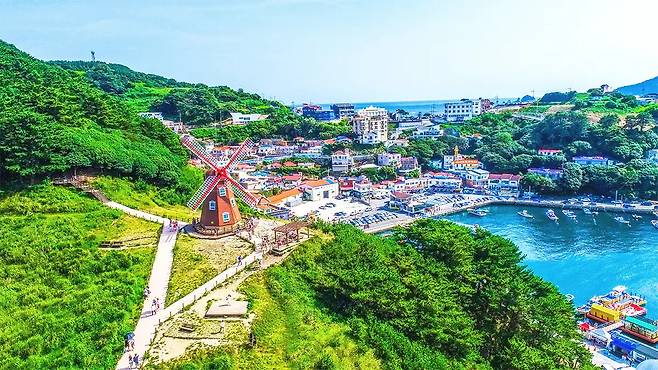 - 도장포마을: 바람의 언덕 아래 자리한 어촌 마을, 잔잔한 항구 풍경이 매력적