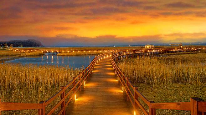 갈대와 노을 품은 탐방로 걷기