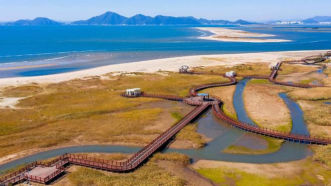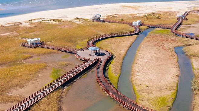 고우니생태길: 수만 평 규모의 습지와 백사장을 나무데크로 잇는 길, 습지 속 식생을 가까이에서 관찰할 수 있는 생태 체험 코스