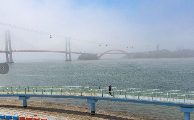 ▶ 실안낙조로 유명한 노을전망교에서는 해가 용 조형물 사이로 떨어지는 장면이 장관을 이루며, 사진가들이 줄을 설 만큼 인기입니다.