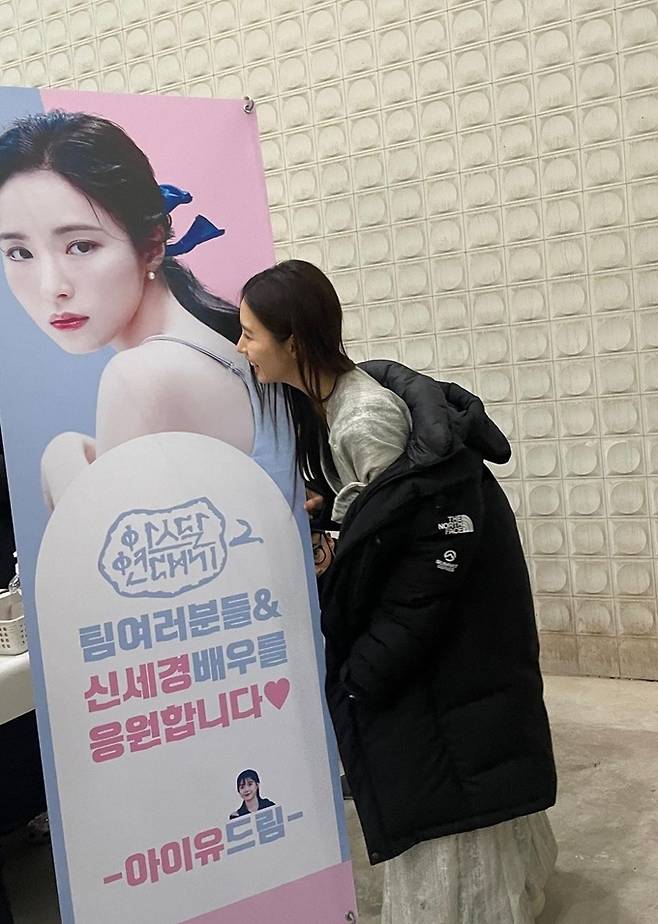홍보물에는 “아스달 연대기2 팀 여러분&신세경 배우를 응원합니다. 아이유 드림”이라는 문구가 담겨있다.