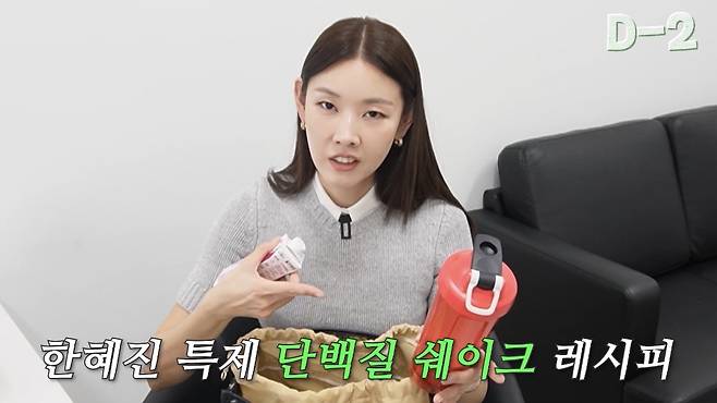 한혜진은 텀블러를 꺼내 "다이어터 필수템이다"라며 "단백질 셰이크다"라고 말했다.