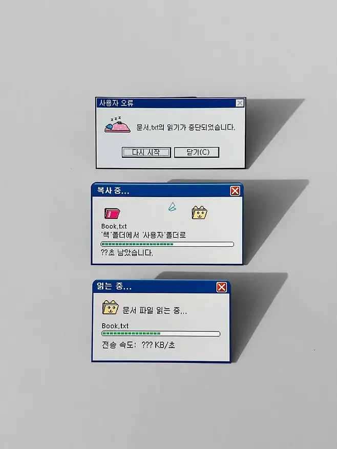 특별한 책갈피를 찾고 있다면 이런 디자인은 어떨까? 윈도우XP 디자인의 ‘구형 컴퓨터 알림창 책갈피’는 사용자 오류, 읽는 중, 복사 중 3종류가 있다. 책을 읽다 막히면 오류창 책갈피를 끼워두는 식으로 쓰면 될 것 같다. 뒷면엔 블루스크린과 함께 ‘시스템이 응답하지 않습니다.’라는 무시무시한 글귀가 담겨있다. 가격은 5,700원. 유어마인드(https://tinyurl.com/ye266u8v)에서 구매할 수 있다.
