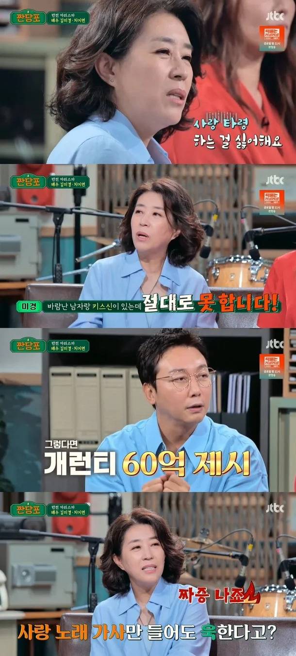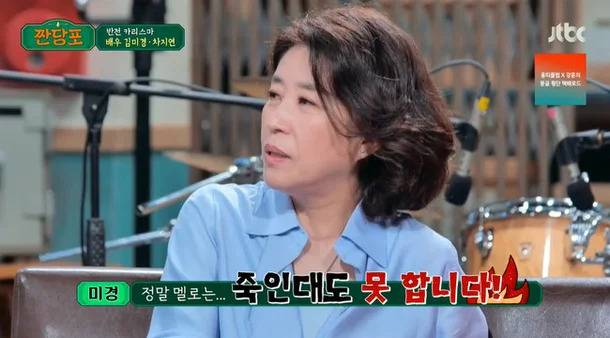 중년의 로맨스를 다룬 영화 이야기가 나오자 김미경은 멜로는 보기만 멋있을 뿐 직접 연기하는 건 무리라고 잘라 말했다.
