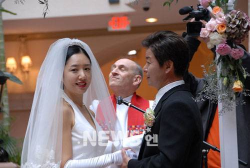 2005년, 미국에 거주 중이던 동료 배우 이주경을 만나러 간 자리에서 재미교포 사업가 배 모 씨를 소개받았고, 이듬해인 2006년 2월 결혼했다.