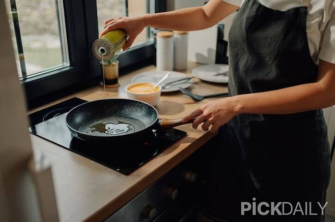 새로 산 후라이팬은 ‘오일 코팅’을 해주면 좋다. 먼저 식용유를 종이타월에 묻혀 팬 전체에 얇게 발라준다. 그 다음 약불에서 1~2분간 예열 후 불을 끄고 식히는 과정을 거치면, 코팅층에 보호막이 형성되어 이후 긁히거나 벗겨질 위험을 줄일 수 있다.