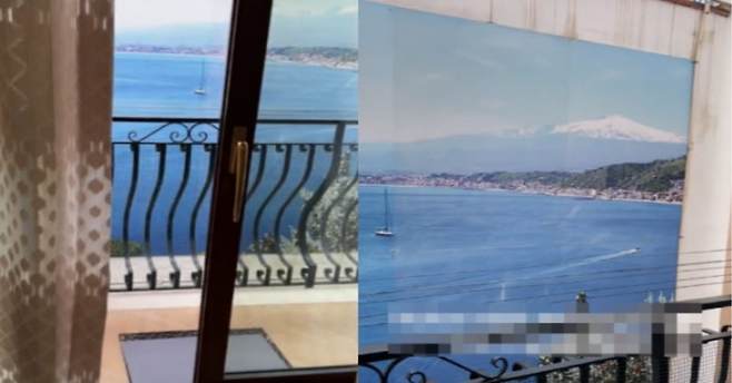 오션뷰라던 숙소에서 펼쳐진 '바다 풍경'은 건너편 건물 벽에 부착된 사진이었던 것입니다.