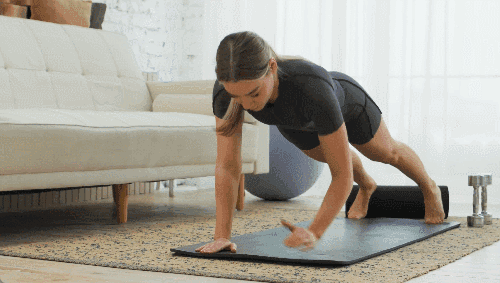 효과 - 가슴, 어깨, 팔 등 상체 근육을 고르게 강화하며 전신 지지력 향상에 도움이 됩니다. 플랭크 변형 동작으로 복부와 코어 근육이 강하게 자극됩니다. 지속적인 움직임을 통해 균형감각과 근지구력도 함께 향상됩니다.