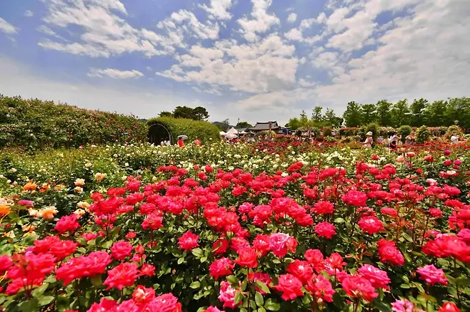 형형색색의 장미가 그려내는 풍경은 이국적인 유럽의 정원을 연상시키며, 걸음을 멈출 때마다 향기가 따라붙는다. 장미 정원은 단순히 꽃만 있는 공간이 아니라, 포토존·공연·체험이 어우러진 복합 문화 공간으로 완성됐다.