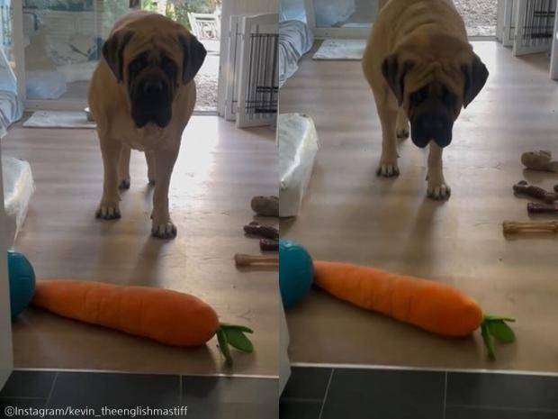 지난 14일(현지 시간) 미국 동물전문매체 퍼레이드펫츠에 따르면, 수컷 잉글리시 마스티프 '케빈(Kevin)'은 매력이 넘치는 겁쟁이 반려견입니다.