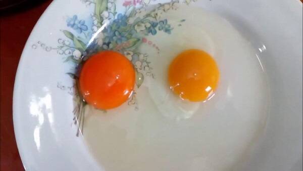 진짜 계란은 노른자 중앙에 투명한 원형 배자가 있고, 가짜(무정란 또는 합성 계란)는 하얀 점/색소가 스며있음