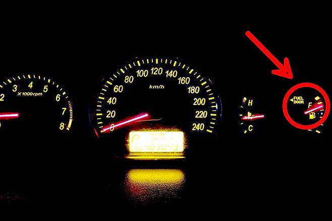 차량 계기판의 주유구 아이콘이 가장 확실