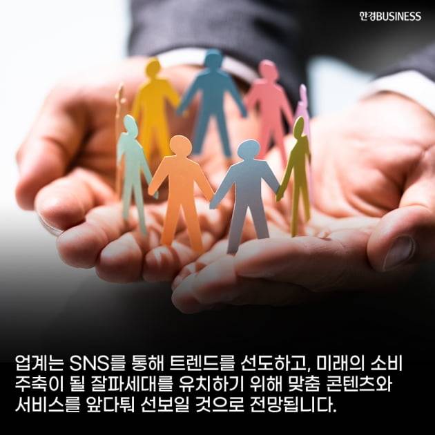 업계는 SNS를 통해 트렌드를 선도하고, 미래의 소비 주축이 될 잘파세대를 유치하기 위해 맞춤 콘텐츠와 서비스를 앞다퉈 선보일 것으로 전망됩니다.