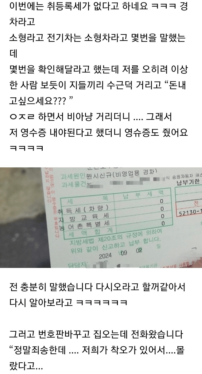 5. 번호판 바꾸고 돌아오는 길에 착오였다고 전화 옴