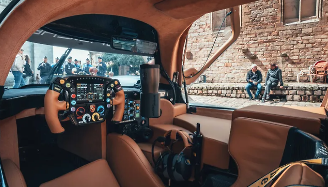실내는 카본 모노코크 섀시 구조를 그대로 유지하면서도, 운전자를 위한 최소한의 편의사양이 제공된다. 단 하나의 운전석 시트에는 고급 가죽과 알칸타라 소재가 적용됐으며, 레이싱 스티어링 휠과 디지털 디스플레이, 6점식 하네스가 고성능 모델임을 여실히 보여준다. 여유 공간에는 헬멧 수납이 가능하며, 이는 실제 레이서들의 주행 환경을 그대로 반영한 결과다.