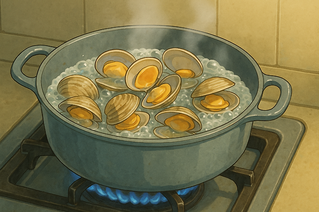 STEP 2 충분가열 : 조개껍질 열리고 5분 더 끓이기