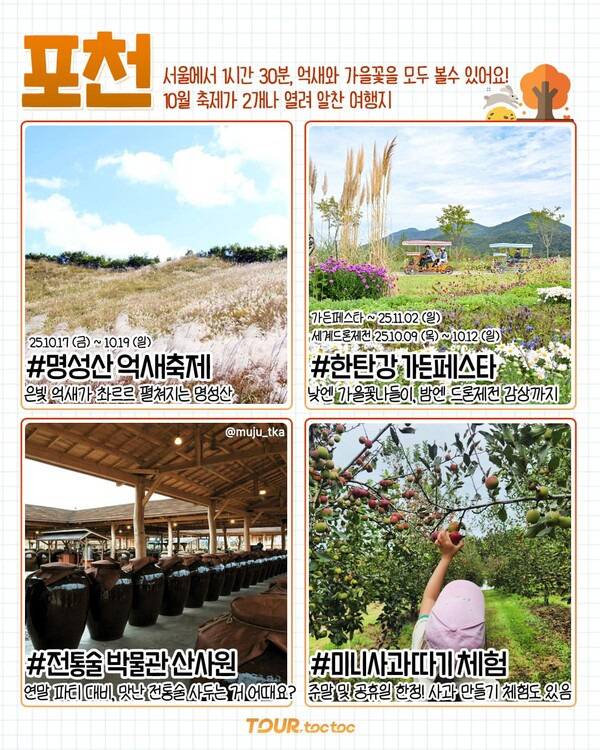 ✅ 명성산 억새축제 ✅ 한탄강 가든페스타+한탄강 세계드론제전 ✅ 전통술 박물관 산사원 ✅ 사과깡패