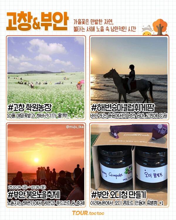 ✅고창 학원농장 ✅ 고창 해변승마 클럽 휘게팜 ✅ 부안 붉은노을축제 ✅ 부안 오디청만들기 체험