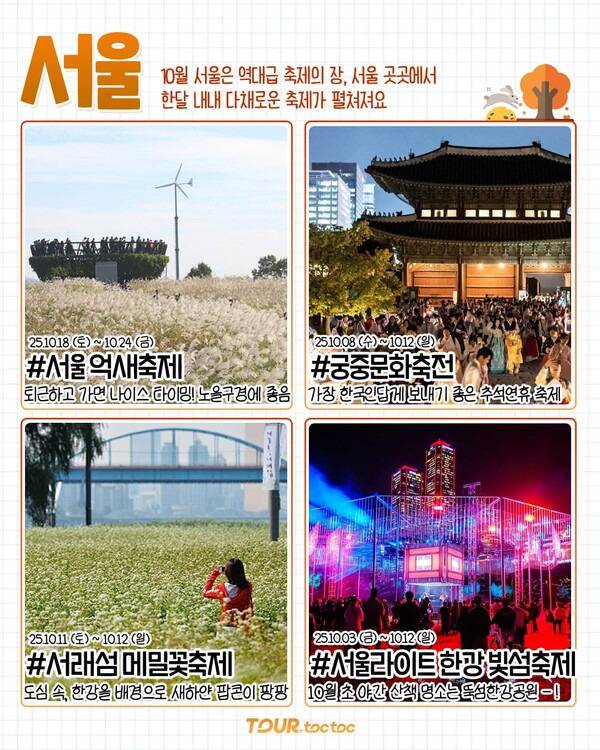 ✅ 서울 억새축제 ✅ 궁중문화축전 ✅ 서래섬 메밀꽃축제 ✅ 서울라이트 한강 빛섬축제