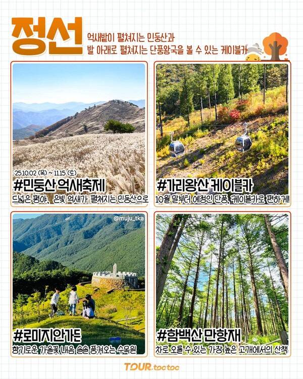 ✅ 민둥산 억새축제 ✅ 가리왕산 케이블카(단풍) ✅ 로미지안가든 ✅ 함백산 만항재