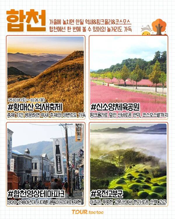 ✅ 황매산 억새축제 ✅ 신소양체육공원 ✅ 합천영상테마파크 ✅ 옥전고분군