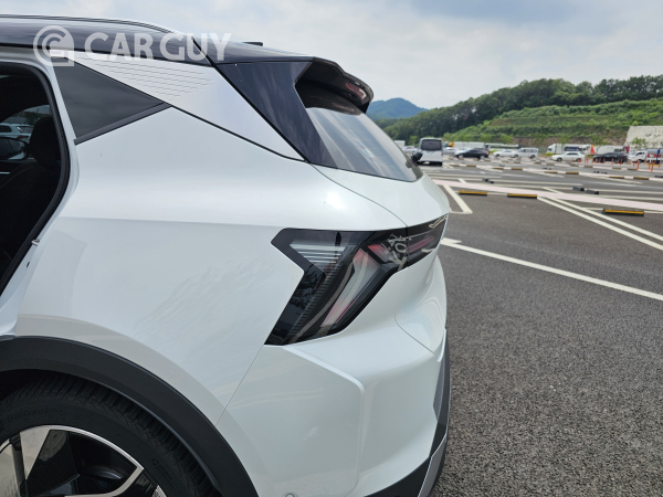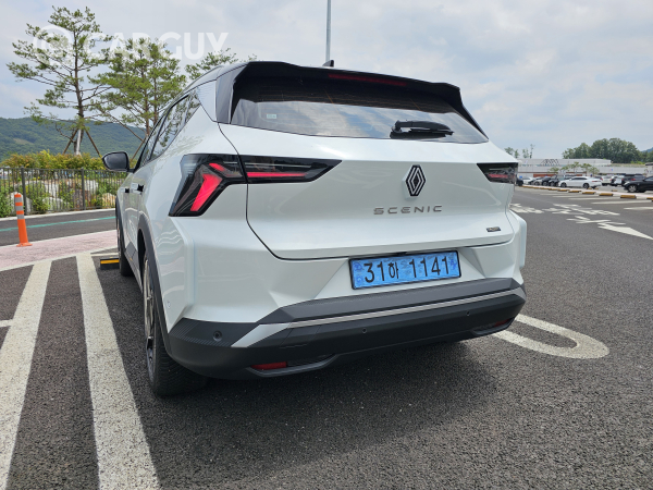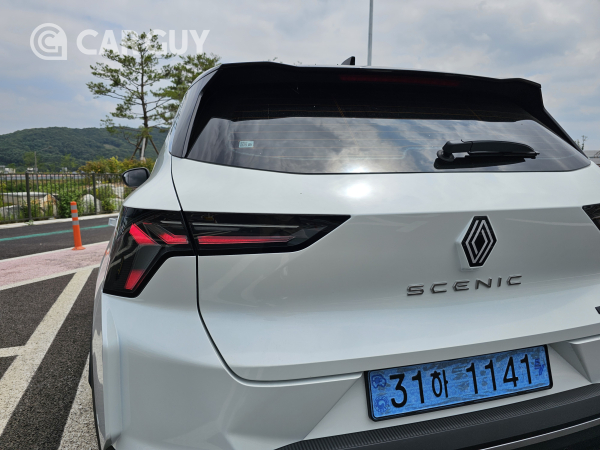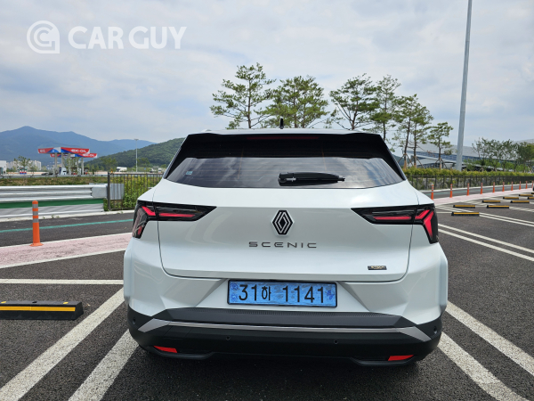 후면도 르노 다운 간결한 디자인이 일품이다. 새로운 로장주 로고를 중심으로 좌우로 가늘고 길게 테일램프가 위치한다. 클리어 타입을 적용해 전기차 다운 이미지를 전해준다. 방향 지시등은 시퀀셜 타입이다. 최신 유행을 잘 반영했고 시인성 또한 뛰어나다.