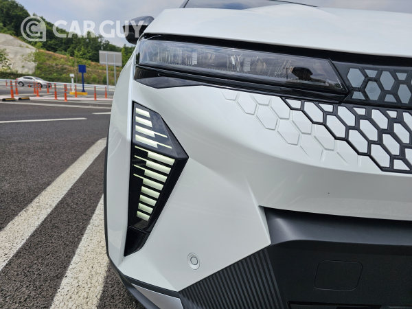 가로형 슬림한 헤드라이트는 준수한 인상이다. 르노 로장주 엠블럼을 반으로 가른 듯한 형상의 데이라이트는 세밀한 그래픽에 더해 전면부 포인트가 된다.