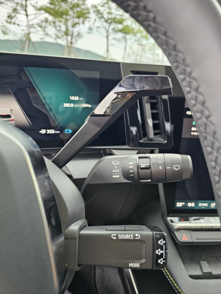 전자식 기어는 컬럼 타입이다. 비슷한 방식의 경쟁 차량 대비 높은 위치에 설정된 것이 특징이다. 조작성은 직관적이고 작동감도 좋은 편이다. 와이퍼 조작 스위치와 가깝고, 그 아래 오디오 조정 레버까지 적용돼 익숙해지기 전까지 조금 혼돈을 줄 수 있는 점은 아쉽다.