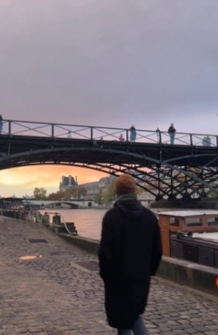 루 쿠마카이는 롱코트에 편안한 블랙 팬츠, 운동화를 매치하고 보라색 우산으로 상큼발랄한 느낌을 줬다.