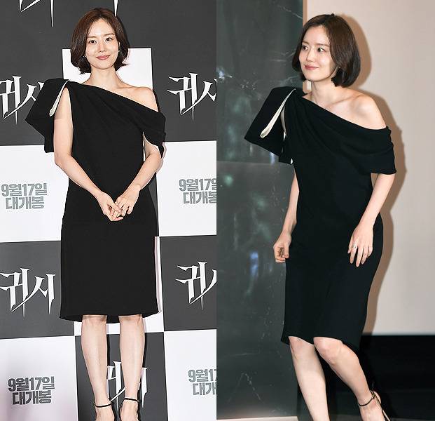 문채원은 고혹적인 매력을 발산하며 단아하면서도 시크한 블랙 원숄더 드레스를 선보였습니다.