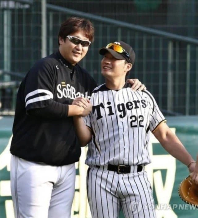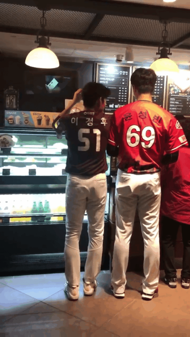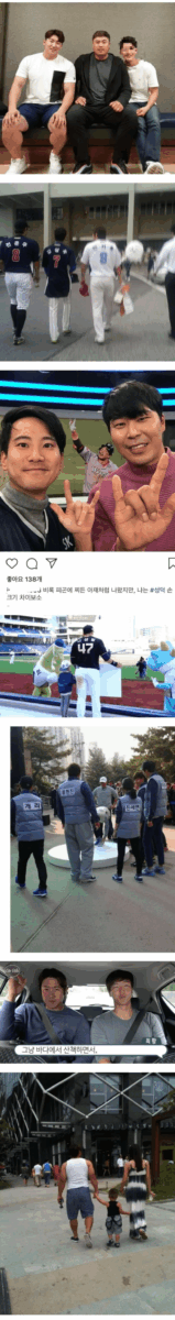 김현수 선수는 냉장고… 아니, 맘모스 정도 되는 걸까요? 😂 옆에 있는 구본혁 선수는 프로필상 키가 177cm로, 결코 작은 키가 아닌데 말이죠! 김현수 선수 옆에 있으니 상대적으로 아담해 보이는 효과…!