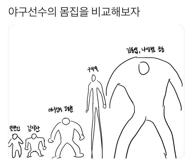 야구팬들 사이에서 끊임없이 회자되는 떡밥, 바로 ‘야구 선수 덩치’입니다. TV나 경기장에서 볼 때는 잘 몰랐는데, 일반인 혹은 다른 연예인들과 함께 있는 모습 보면 그 덩치 차이에 깜짝 놀라곤 하죠. 오늘은 야구 선수들의 어마어마한 피지컬을 실감할 수 있는 짤들을 모아봤습니다. 과연 얼마나 크길래 이런 반응이 쏟아지는 걸까요?