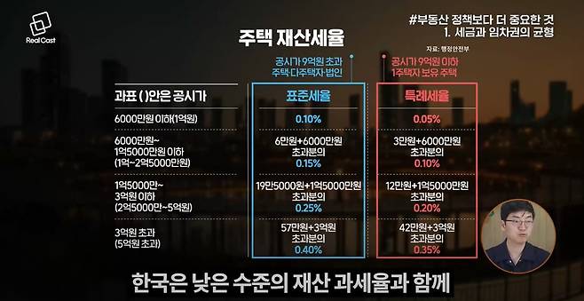 실제로 자본주의가 고도화된 국가들조차 재산 과세에 대해선 시장 합리화를 진행하고 있습니다. 반면, 한국은 재산세 수준도 낮고 임차권 보호도 미약한 상황입니다. 이상적인 구조는 재산세가 높으면 임차권 보호는 약하고, 재산세가 낮으면 임차권 보호는 강해야 균형이 맞습니다.