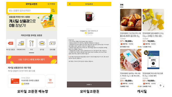 적립된 캐시는 카페, 편의점 등 다양한 기프티콘으로 교환 가능하고,