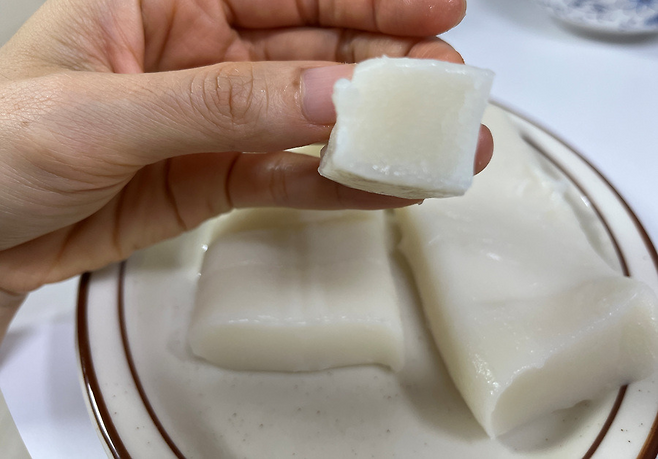 맵쌀로 만든 절편의 경우 다른 어떤 방법보다 끓는 물에서 짧게 데치는 것이 가장 맛있습니다.