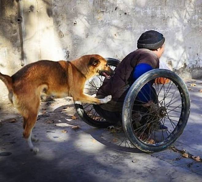 그도 그럴 것이 그의 곁에는 강아지가 늘 항상 함께하고 있기 때문인데요. 사연은 이렇습니다. SNS상에는 두 다리 잃은 주인을 위해 휠체어를 밀어주는 강아지 사진이 올라온 것.