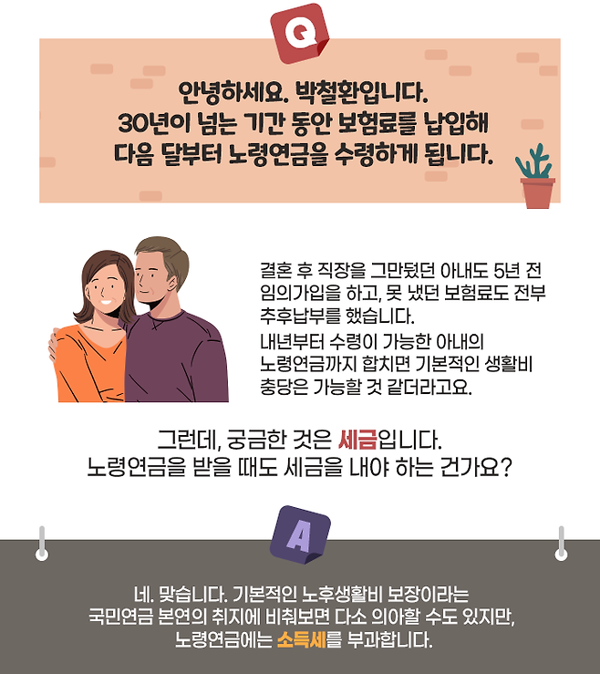 보험료를 납부할 때 소득공제를 받았으니, 노령연금을 받을 때 세금을 내야 한다는 게 논리적으로 맞아 보입니다. 하지만 노령연금 그게 얼마나 된다고 세금을 부과하느냐고 볼멘소리를 하는 사람이 적지 않습니다.