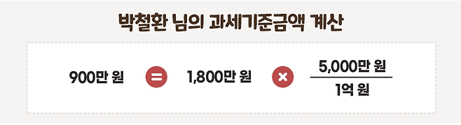이렇게 되면 과세 기간 동안 수령한 노령연금 중 50%만 과세 대상이 됩니다. 만약 박철환 씨가 한 해 동안 노령연금으로 1,800만 원을 받았다면, 과세기준금액은 이중 절반인 900만 원이 되는 겁니다.