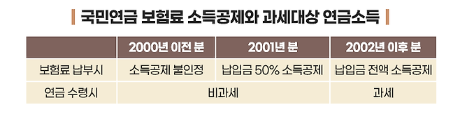 국민연금 보험료를 전액 소득공제 해 주기 시작한 것은 2002년부터입니다. 대신 2002년 이후 납부한 보험료에서 발생한 노령연금에는 소득세를 부과하고 있습니다.