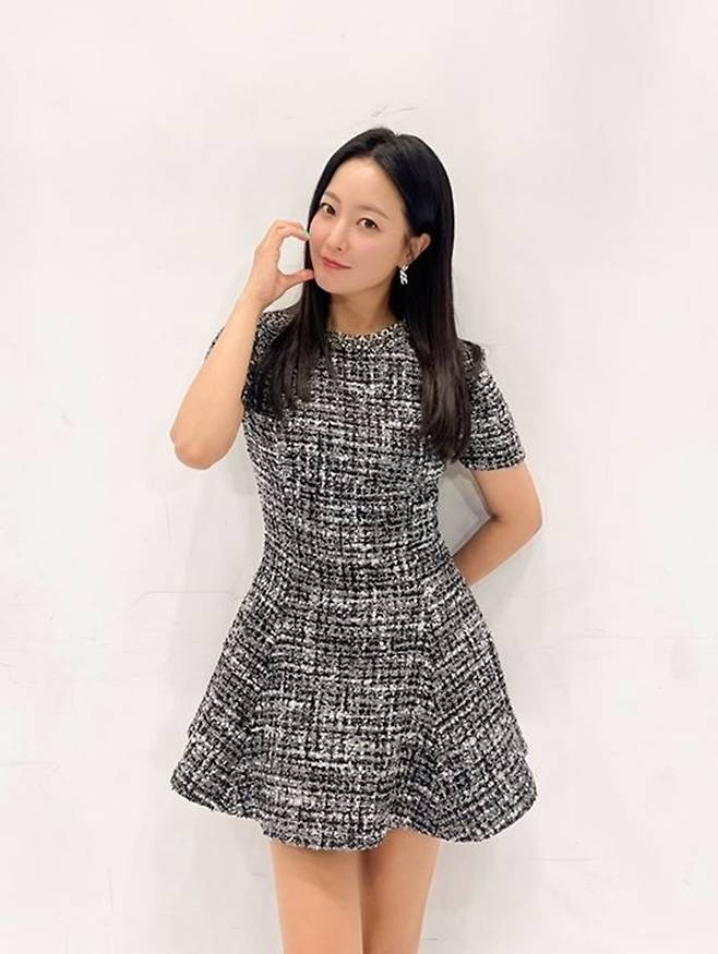 배우 김희선이 트위드 미니 원피스룩으로 47세 나이를 잊은 소녀 같은 여신미를 드러냈다.