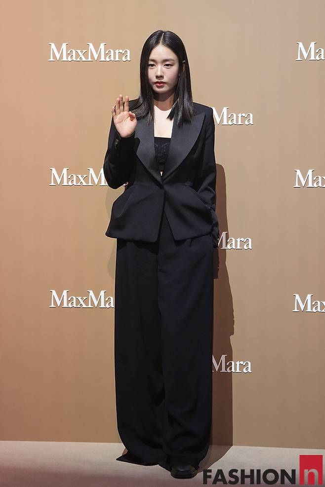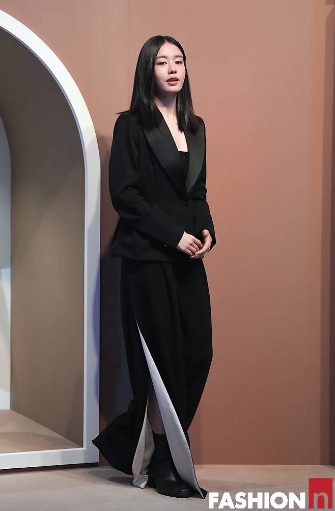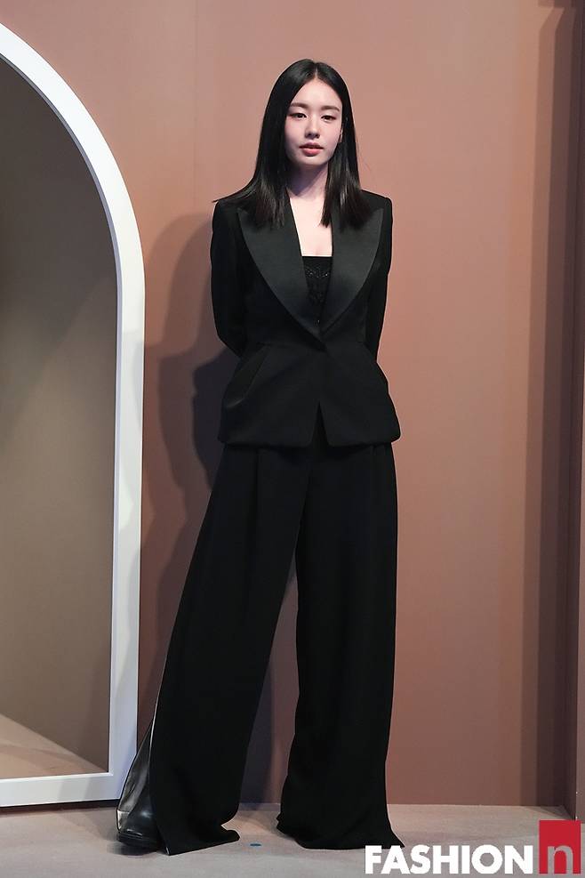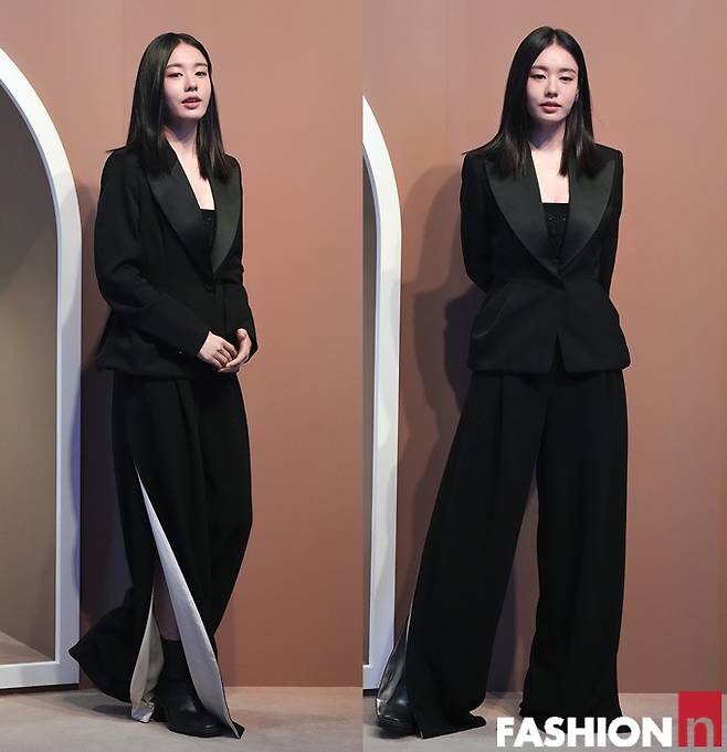 이날 안은진은 옆트임이 있는 블랙 와이드 팬츠와 블랙 이너에 블랙 재킷을 걸친 올 블랙 슈트룩으로 단정하면서도 시크한 스타일로 눈길을 사로잡았다.