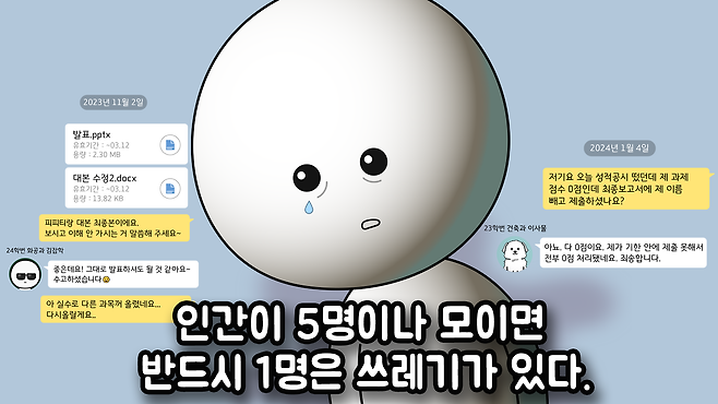 하지만 이러한 목적과는 달리 조별 과제에 대한 사람들의 인식은 대체로 참혹합니다. 아무래도 여럿이 모여 하나의 과제를 수행하다 보면 갈등이 생기기 쉽기 때문인데, 실제 대학생들은 조별 과제를 어떻게 인식하고, 갈등이 생겼을 때 어떻게 해소하는지 궁금증이 생깁니다.